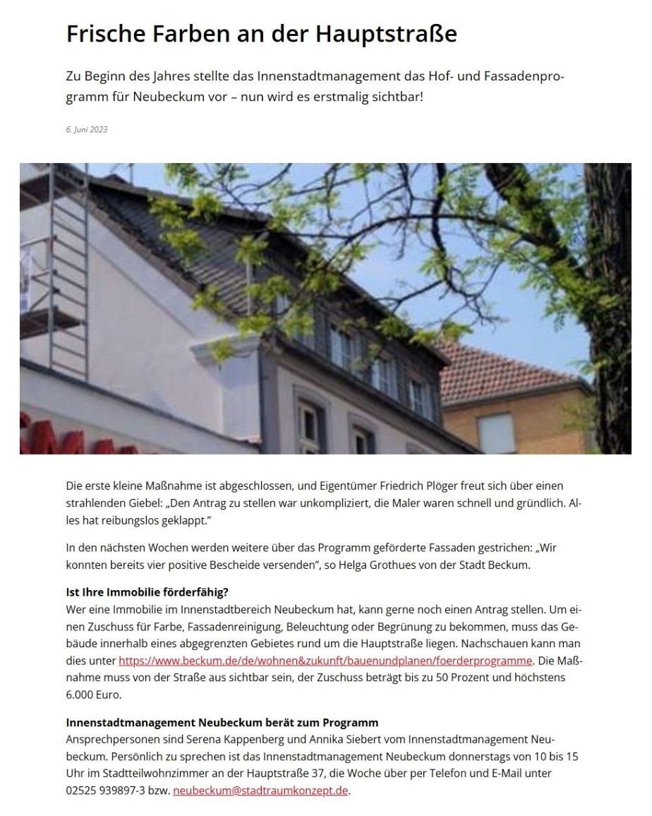 Alle wichtigen Informationen finden Sie hier: Hof- und Fassadenprogramm Innenstadt Neubeckum