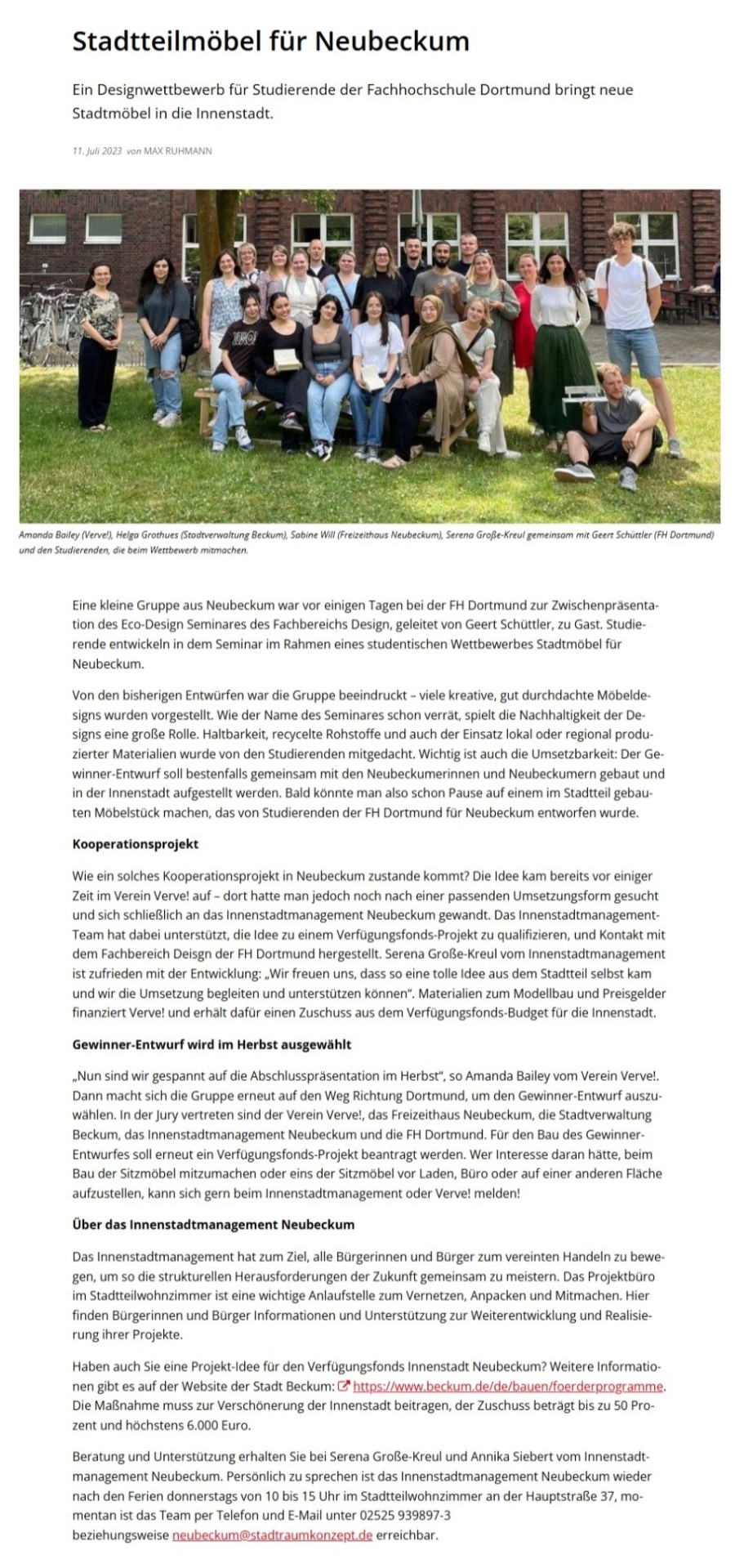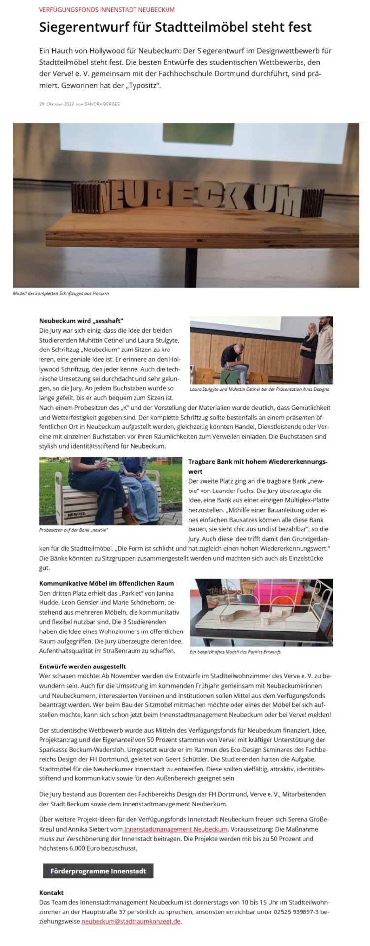 Pressemeldung vom 30.10.2023Stadtteilmöbel für Neubeckum